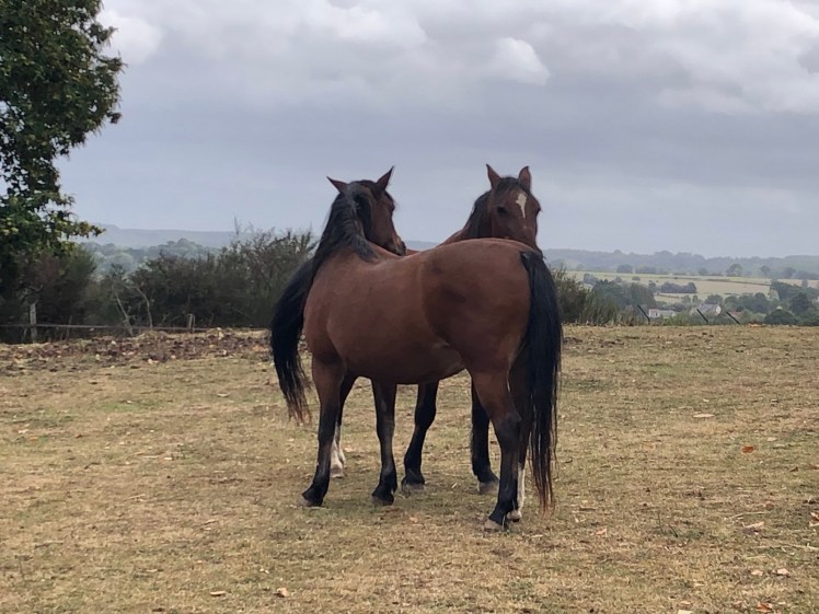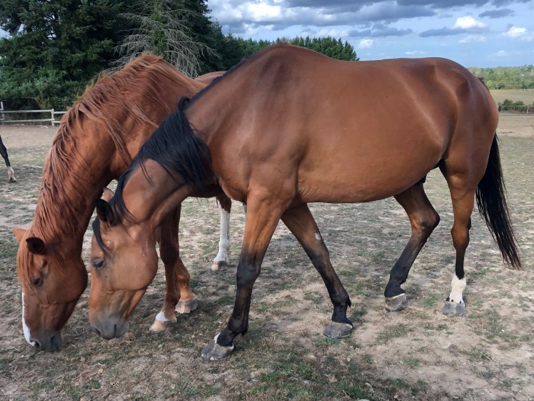 Le groupe de Chochotte ( moins châtaigne qui ne voulait pas sortir de l’abri ) en train de pratiquer son activité favorite ! 23 septembre 2019