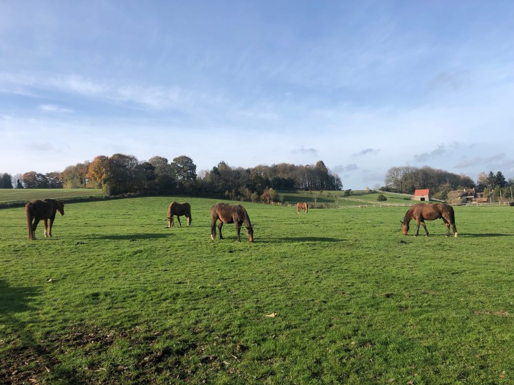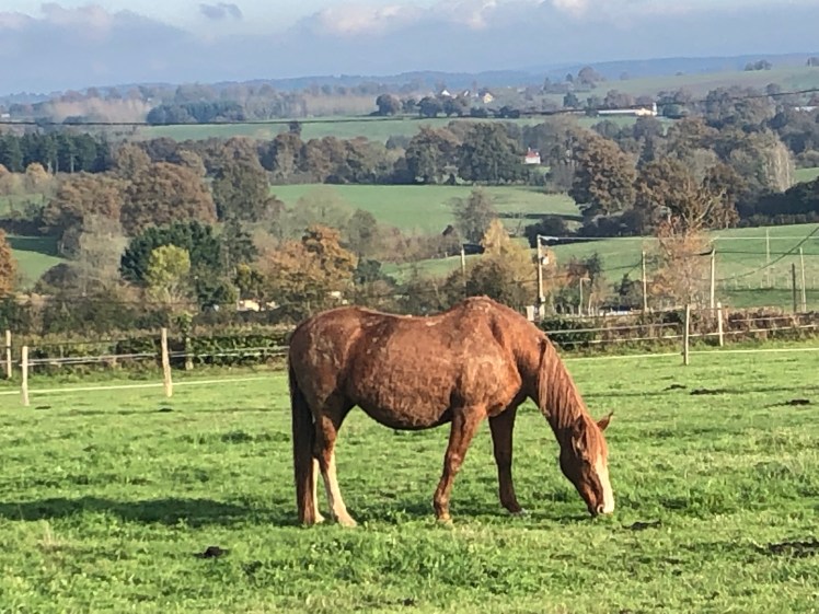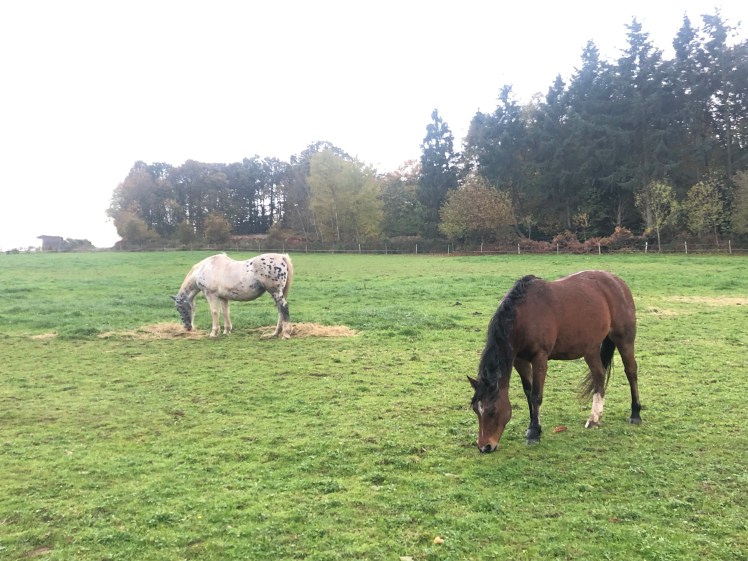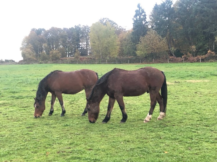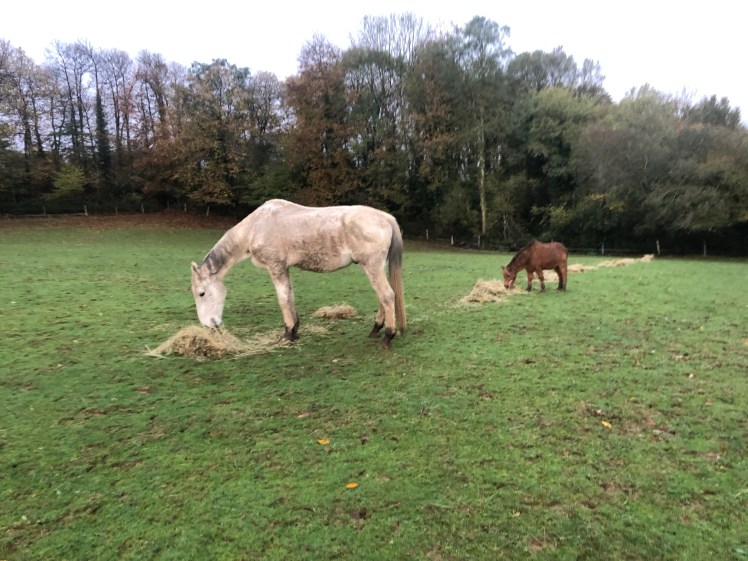 Dans le groupe d’It’s me, on grignote du foin ( enfin surtout Lucy.. ) mais on profite encore des derniers brins d’herbe. 13 novembre 2019